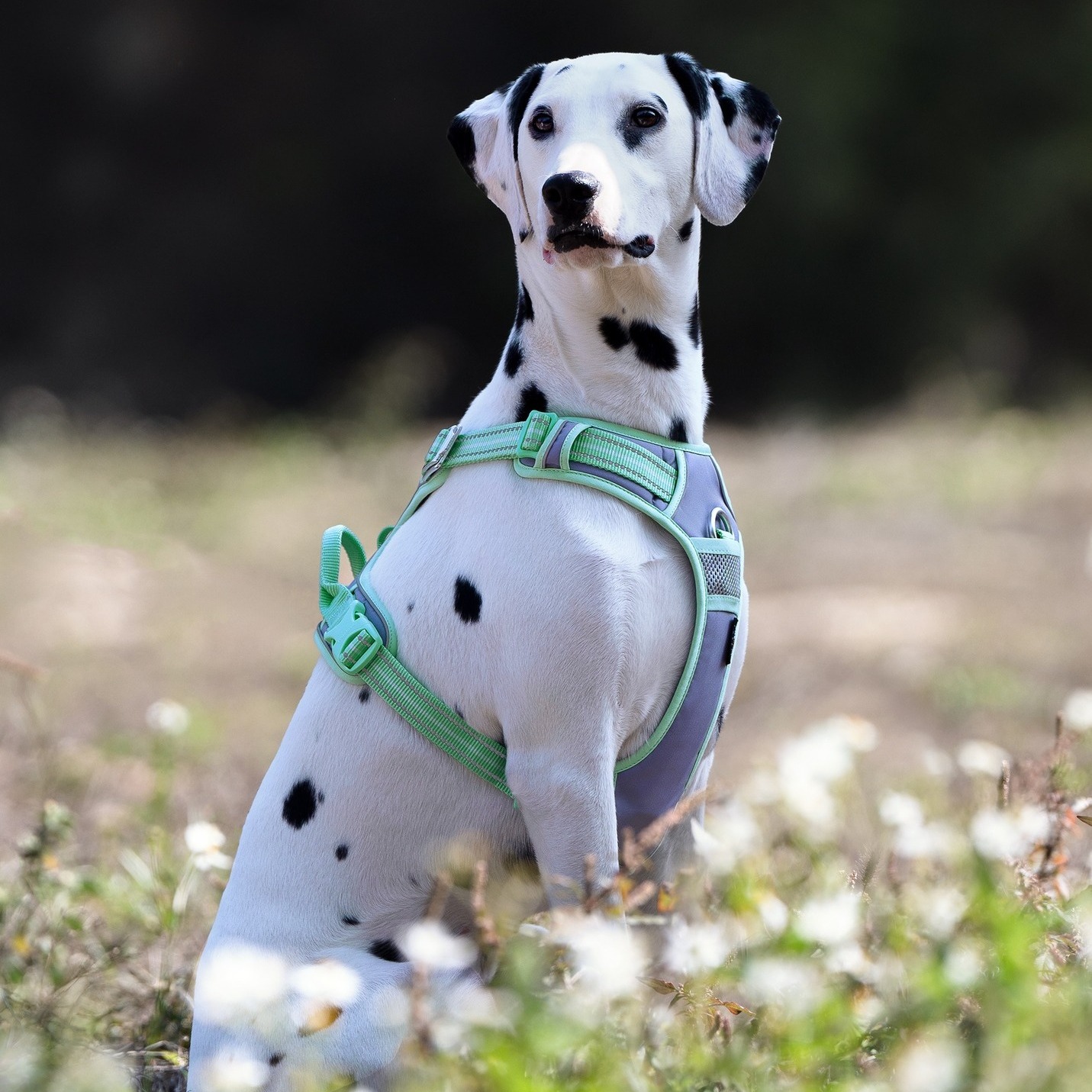 - Odblaskowe przeszycia 3M™ Scotchlite™ — smycz odbija światło reflektorów i latarek; widoczna z dużej odległości po zmroku, na jesienno-zimowych spacerach i o świcie