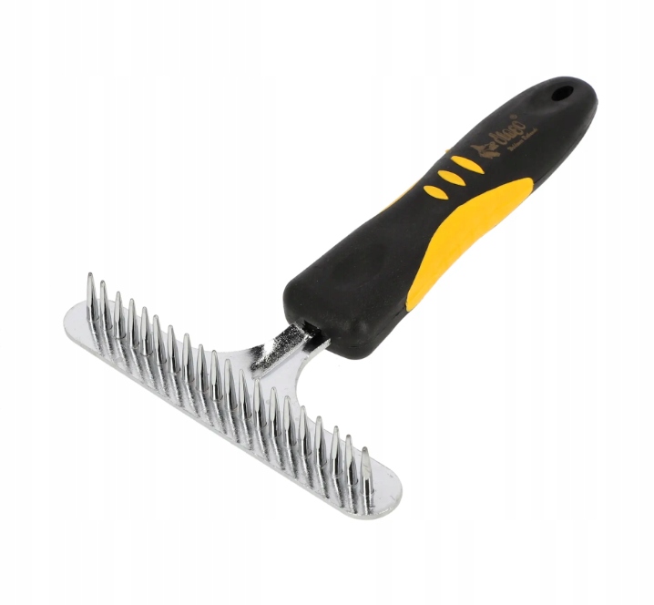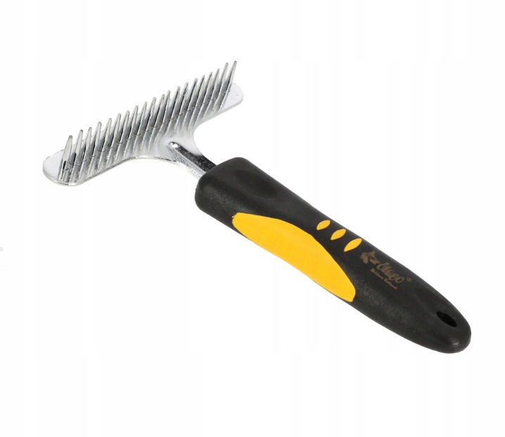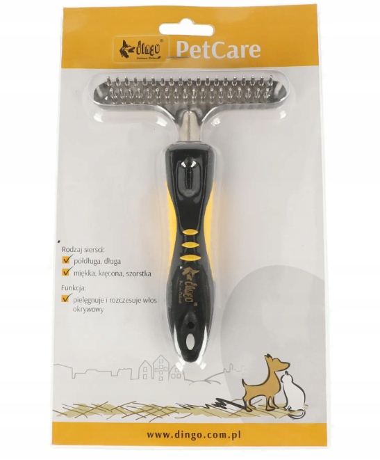 Dwurzędowe zgrzebło metalowe DINGO to niezastąpione narzędzie do pielęgnacji sierści psów o gęstym podszerstku. Wykonane z trwałego metalu i wyposażone w ergonomiczną, antypoślizgową rączkę, doskonale rozczesuje splątania i usuwa martwy włos. Idealne dla psów o długiej, półdługiej lub grubej sierści.
