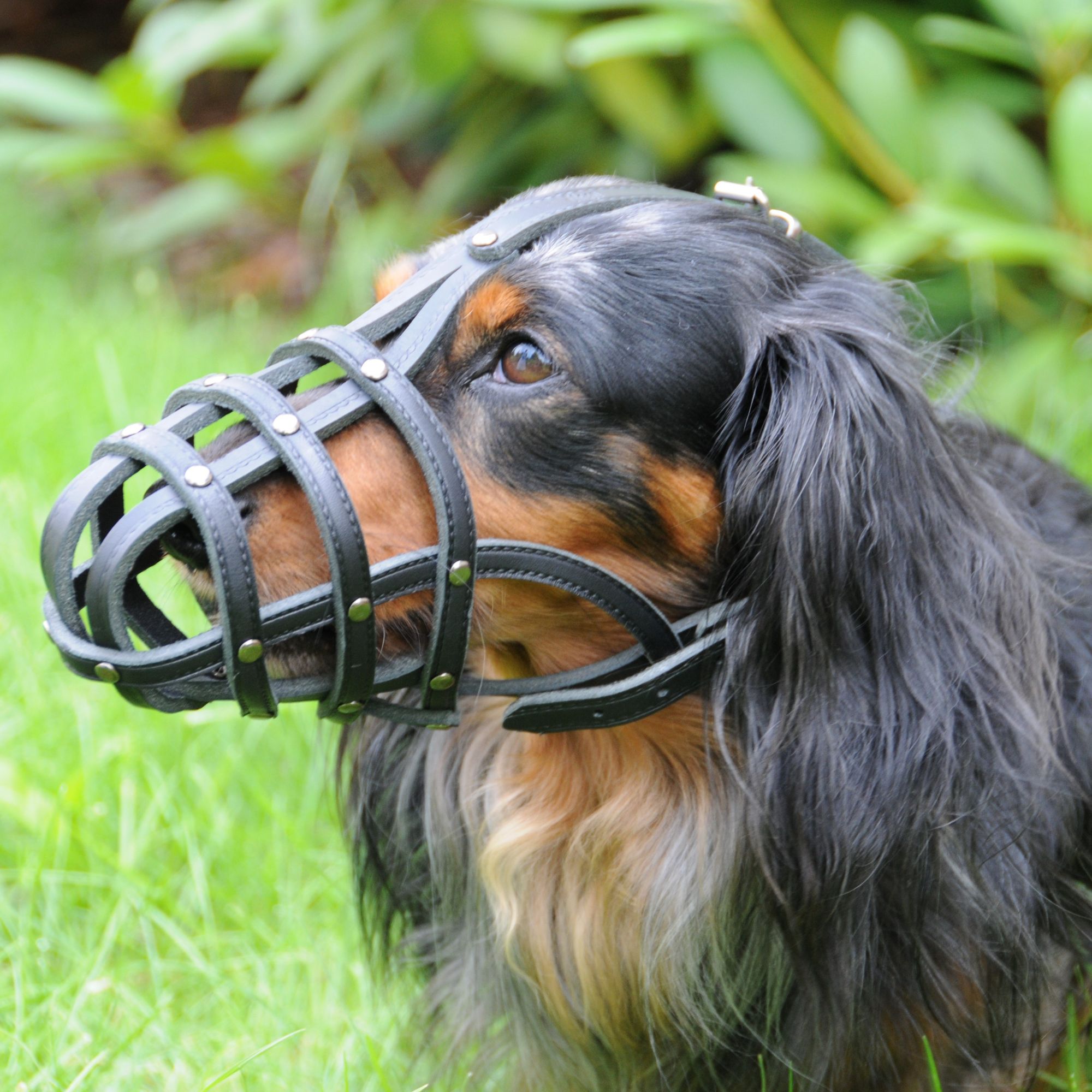 Wzmocniona wersja skórzanego kagańca — łączony za pomocą nitów zamiast szycia, z metalowymi klamrami do zapinania i regulacji. Wszystkie elementy stalowe chromowane. Zaprojektowany z myślą o owczarku niemieckim — dostępny w 4 rozmiarach (A od 28 do 40 cm). Solidniejszy niż zabudowany standardowy, zachowuje komfort skóry przy wyższej wytrzymałości mechanicznej.