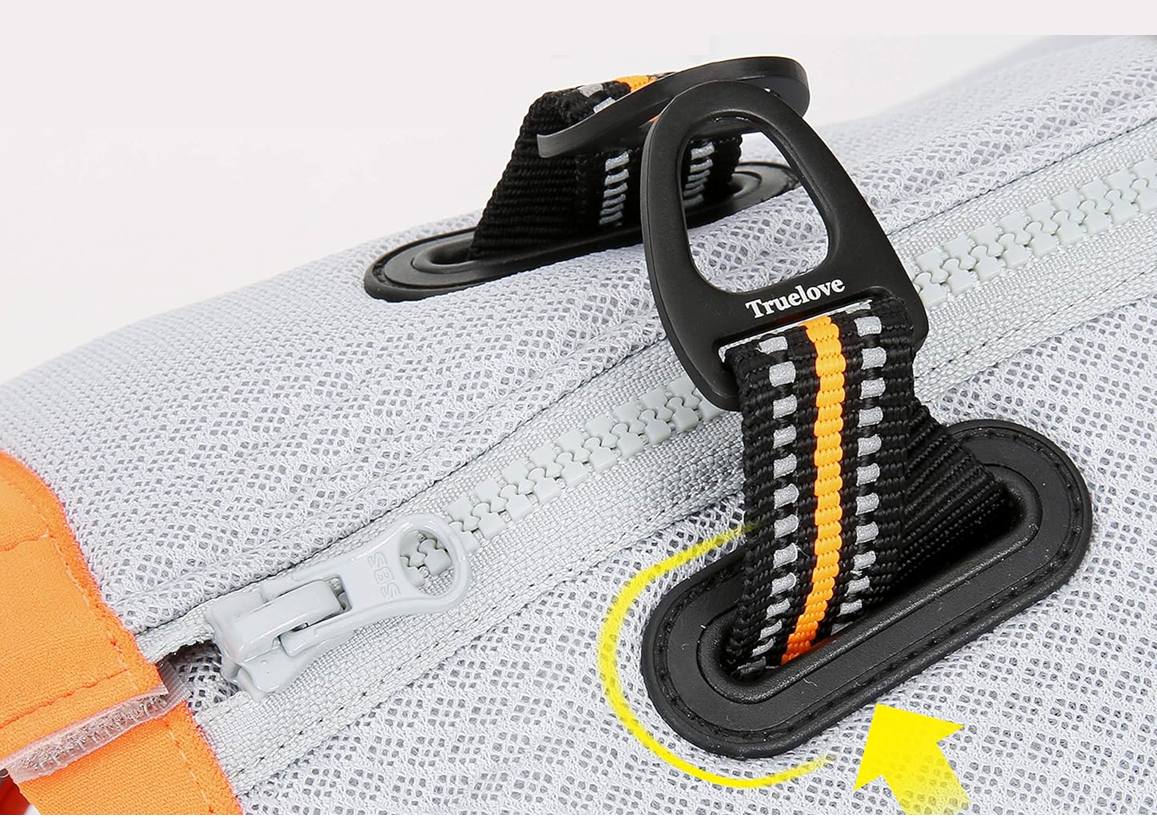 Kamizelka chłodząca dla psa 2w1 Truelove – trójwarstwowa (jasnoszara z pomarańczowymi taśmami)