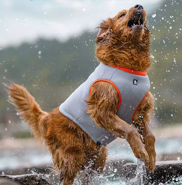 Najskuteczniejsza kamizelka na upał dla psa na lato — chłodzi, nie obciąża i zastępuje szelki.