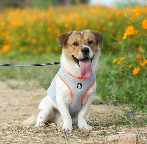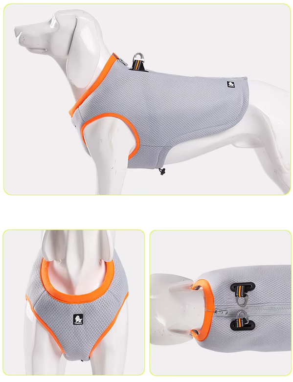 Kamizelka chłodząca / szelki dla psa Truelove – jasnoszara z pomarańczowymi taśmami, lekka i oddychając