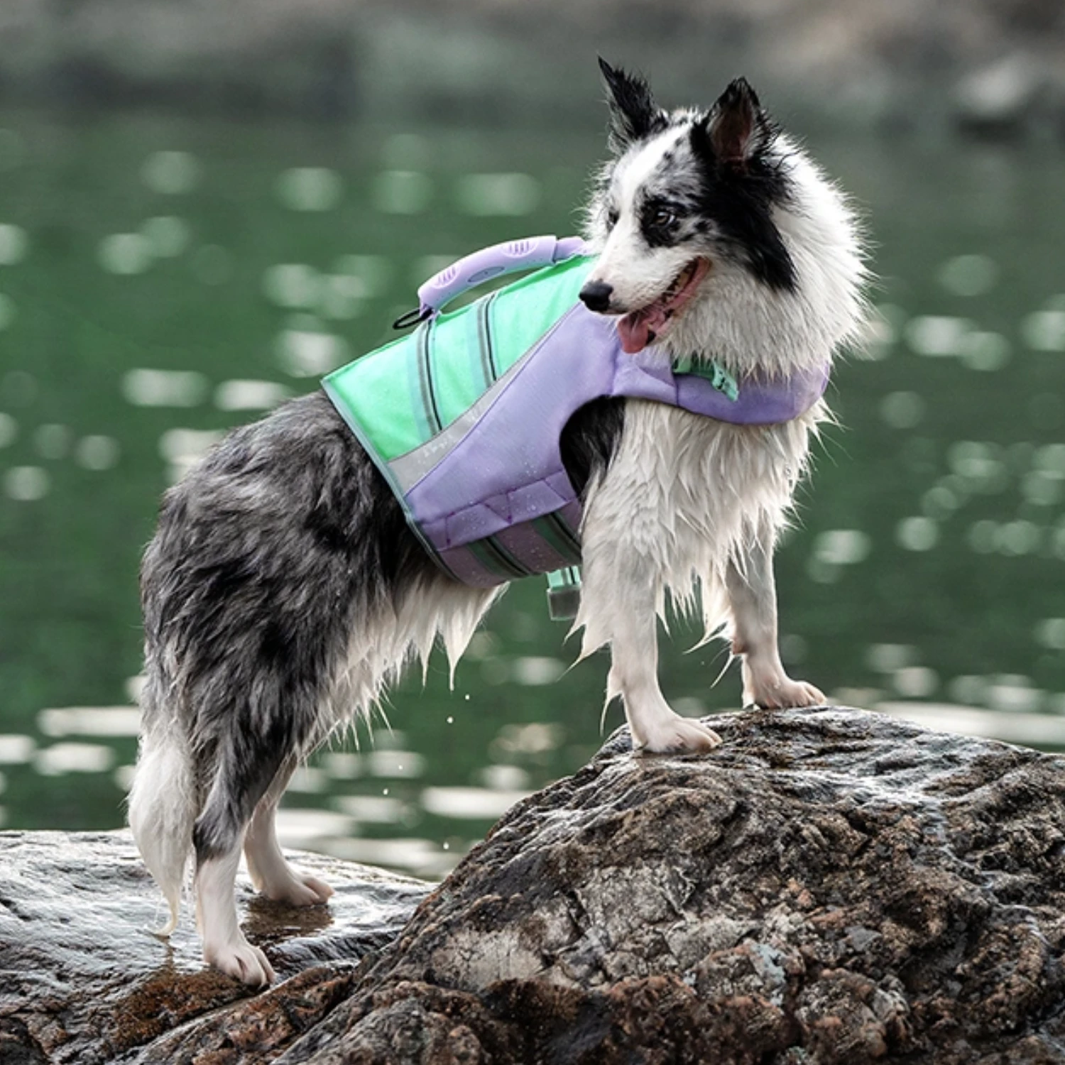 To nie jest zwykła kamizelka. To sprzęt ratunkowy — zaprojektowany na wypadek sytuacji, których nie planujesz. Liliowy kolor i odblaski sprawiają, że pies jest widoczny na wodzie z dużej odległości — zarówno w dzień, jak i o zmierzchu.