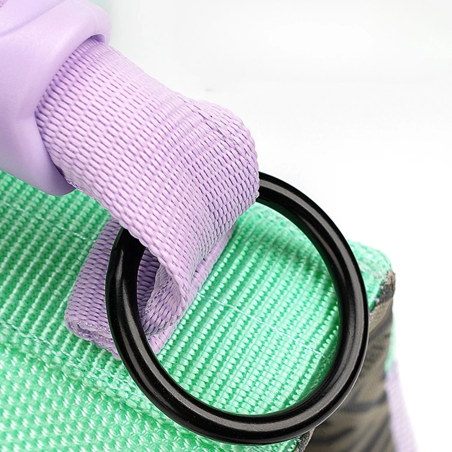 - Metalowe kółko do smyczy — bezpośrednio na kamizelce; przy wodzie nie musisz zakładać psu obroży — smycz przypinasz do kółka na kamizelce