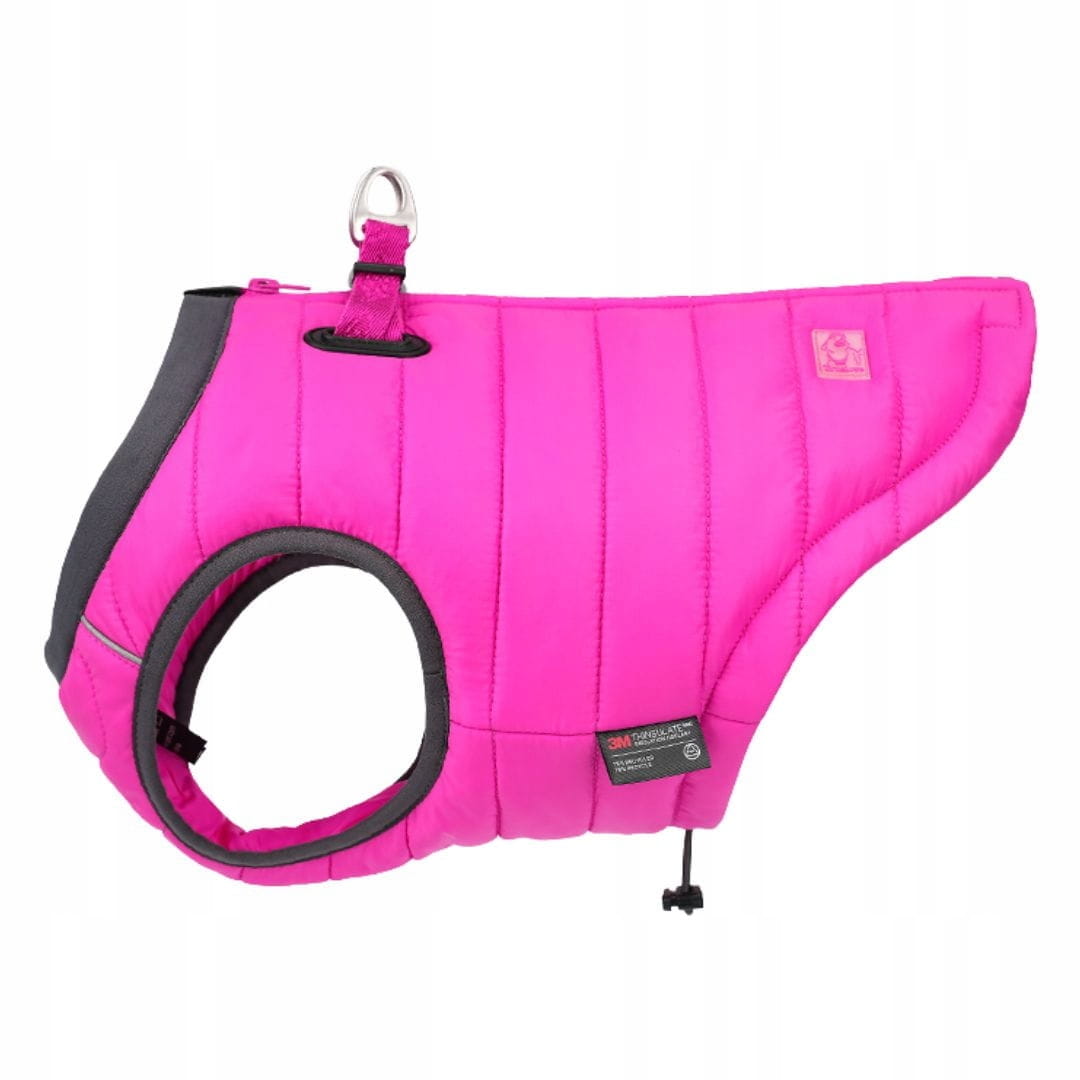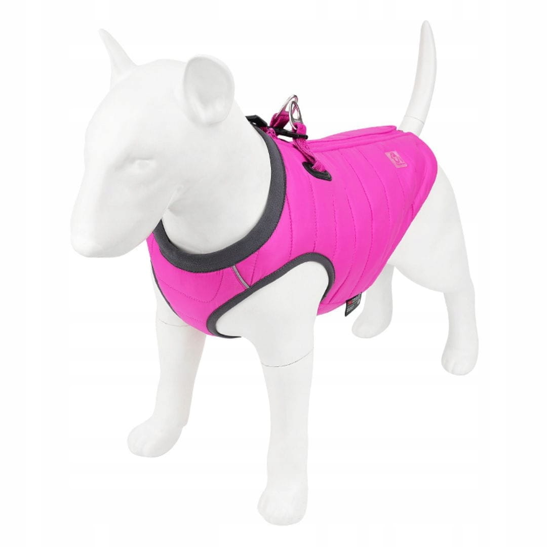 - 2w1 — kurtka i szelki — wbudowane mocne taśmy i zapięcia pozwalają przypiąć smycz bez dodatkowych szelek; jeden produkt na zimowy spacer zamiast dwóch