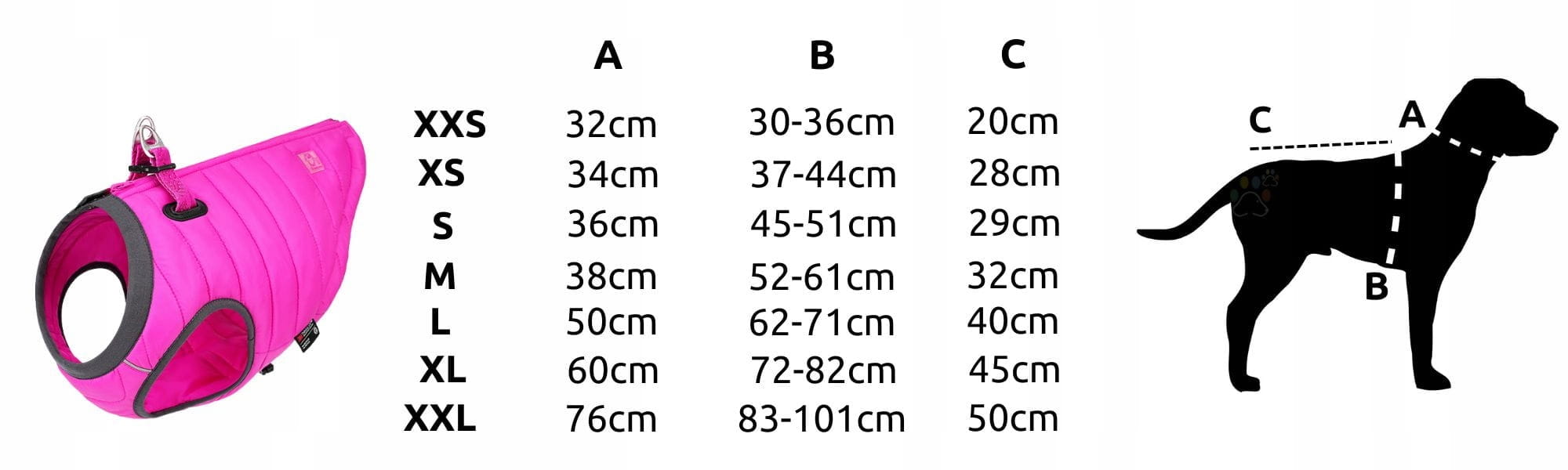 Przy granicy rozmiarów wybierz większy. Szczegółowy poradnik: jak dobrać rozmiar kurtki dla psa.