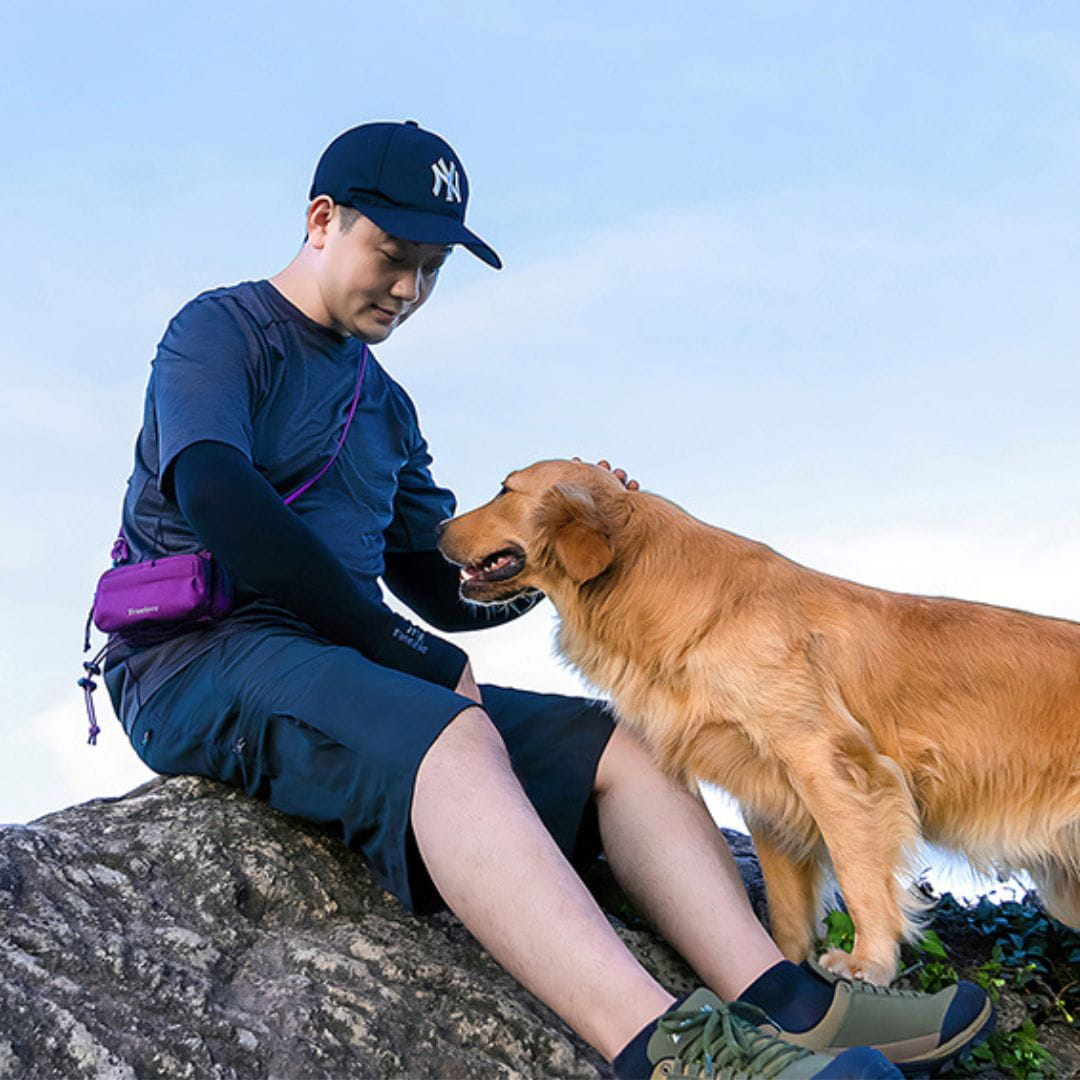 - Wyposażenie: kieszeń zewnętrzna, 2 kieszenie wewnętrzne (w tym jedna na zamek), elastyczny uchwyt na butelkę, pasek-awaryjna smycz