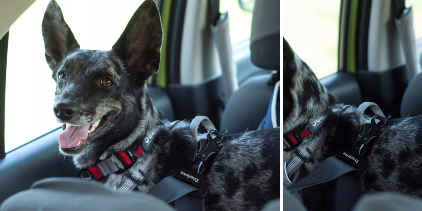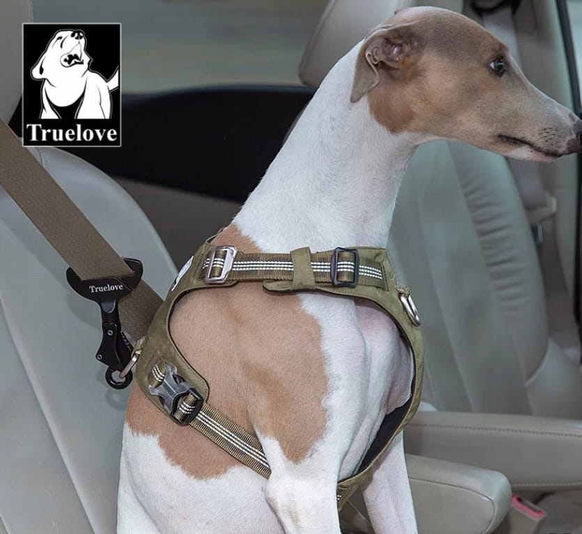 Pamiętaj, aby zawsze przypinać pas do szelek psa, a nie do obroży – w połączeniu z szelkami samochodowymi Truelove, np. Truelove Expedition, zapewnia pełną ochronę i komfort podróży.