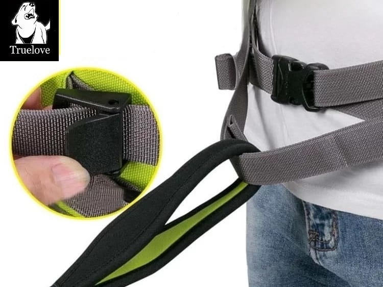 Pas Trek Go jest kompatybilny ze wszystkimi smyczami Truelove, ale do biegania szczególnie polecamy smycze z amortyzatorem — przy dynamicznym biegu amortyzator chroni stawy Twoje i psa przed gwałtownymi szarpnięciami. Standardowa smycz przy intensywnym tempie przenosi pełną siłę szarpnięcia bezpośrednio na pas i biodra.