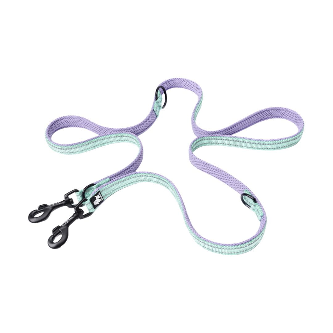 Smycz przepinana dla psa Truelove Active Pro+ 250 cm – odblaskowa, regulowana, dwa psy (liliowo-miętowa)