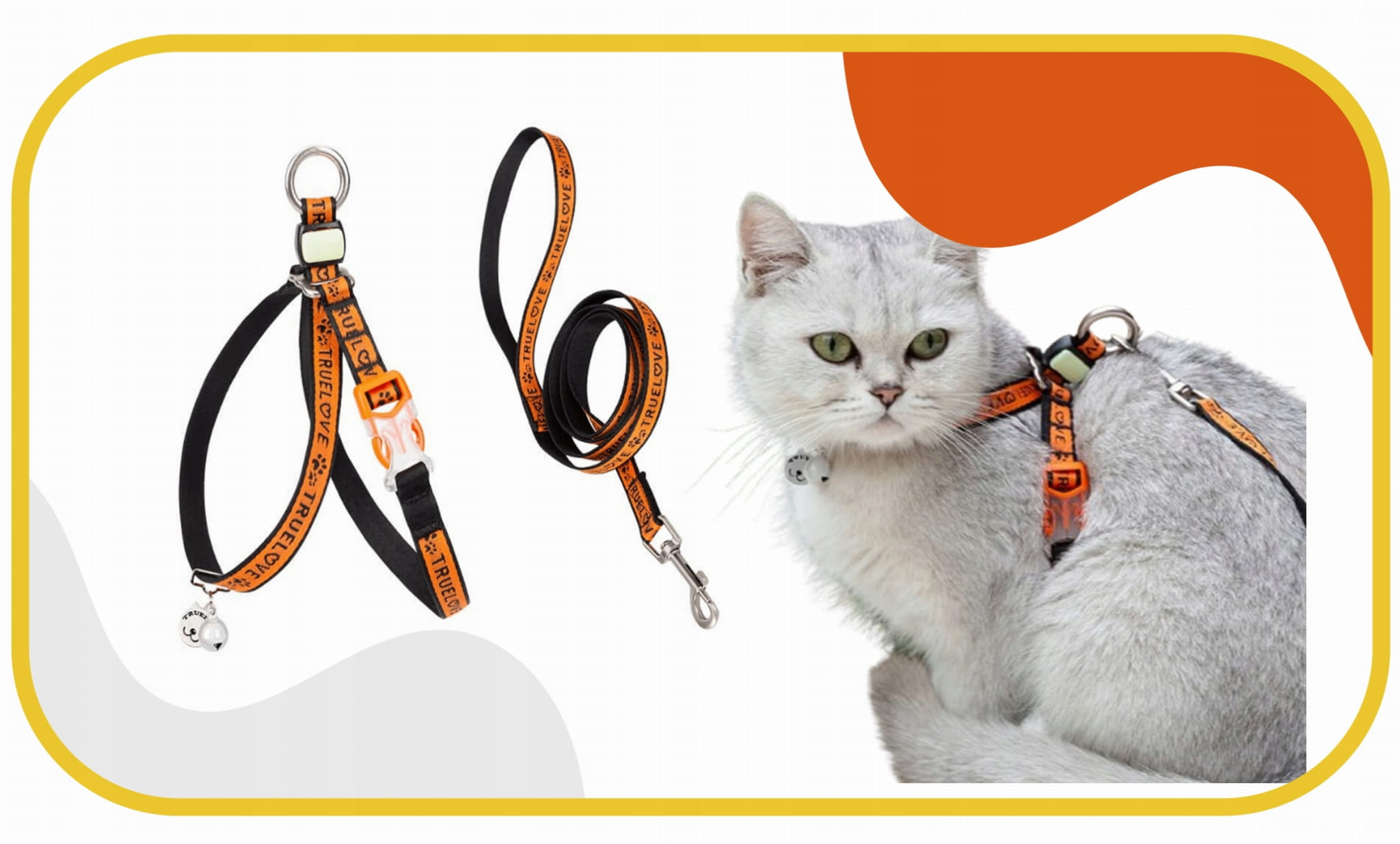 Szelki i smycz dla kota Truelove Butterfly – klamry Duraflex, odblask, smycz 120 cm, dzwoneczek (pomarańczowe)