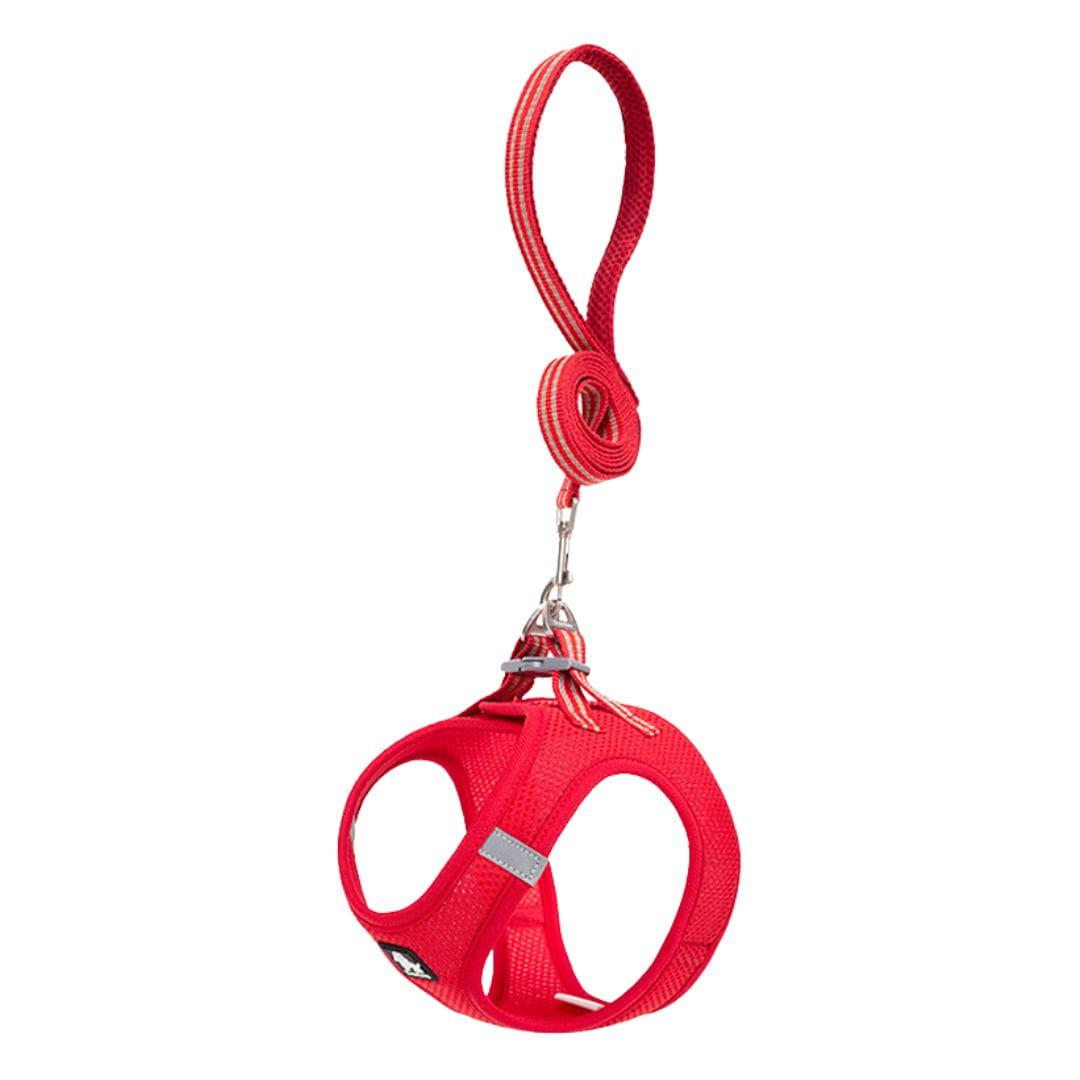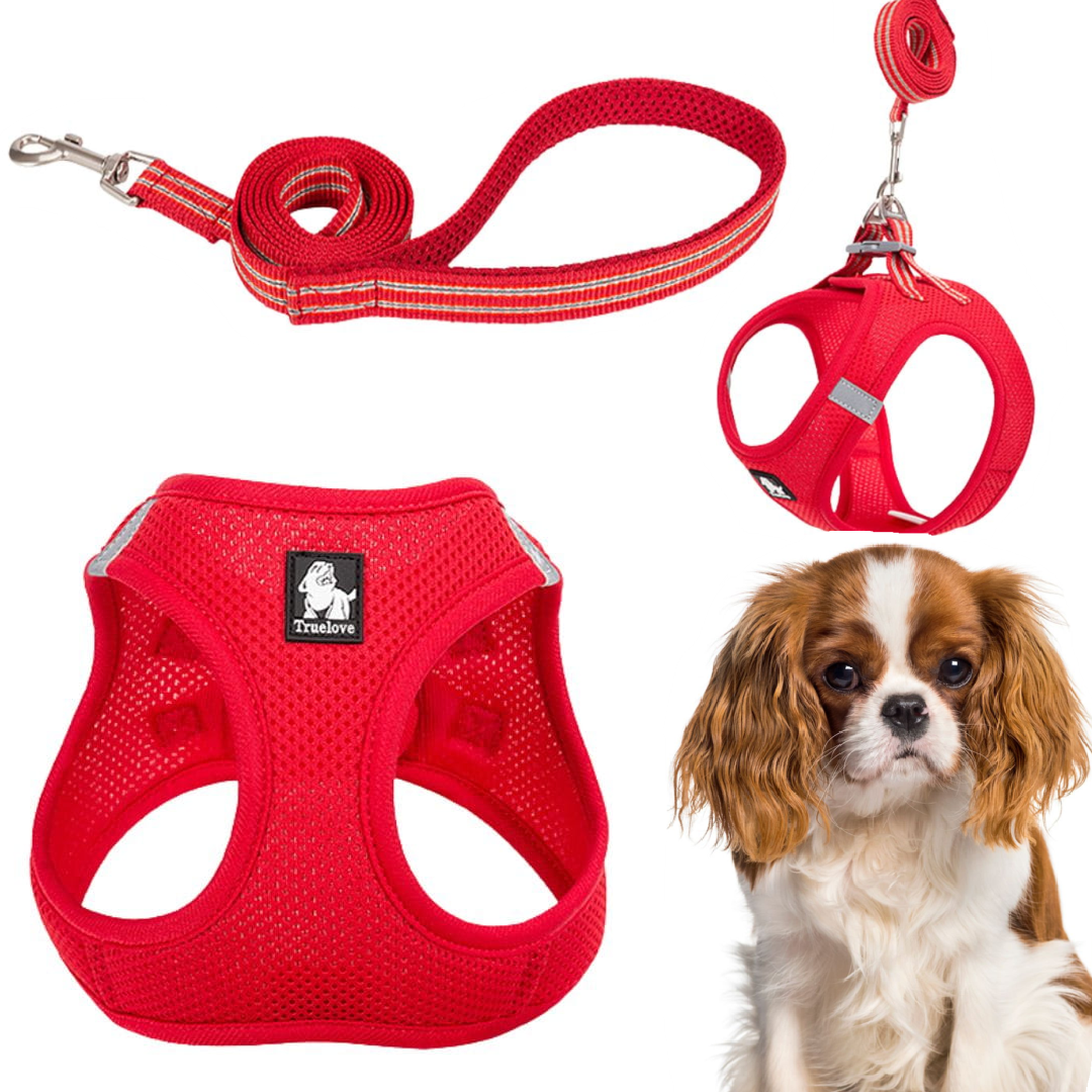 Zestaw szelki step-in / walk-in + smycz Truelove Mini Mesh – siateczka MESH, odblask, dla psa i kota (czerwone)