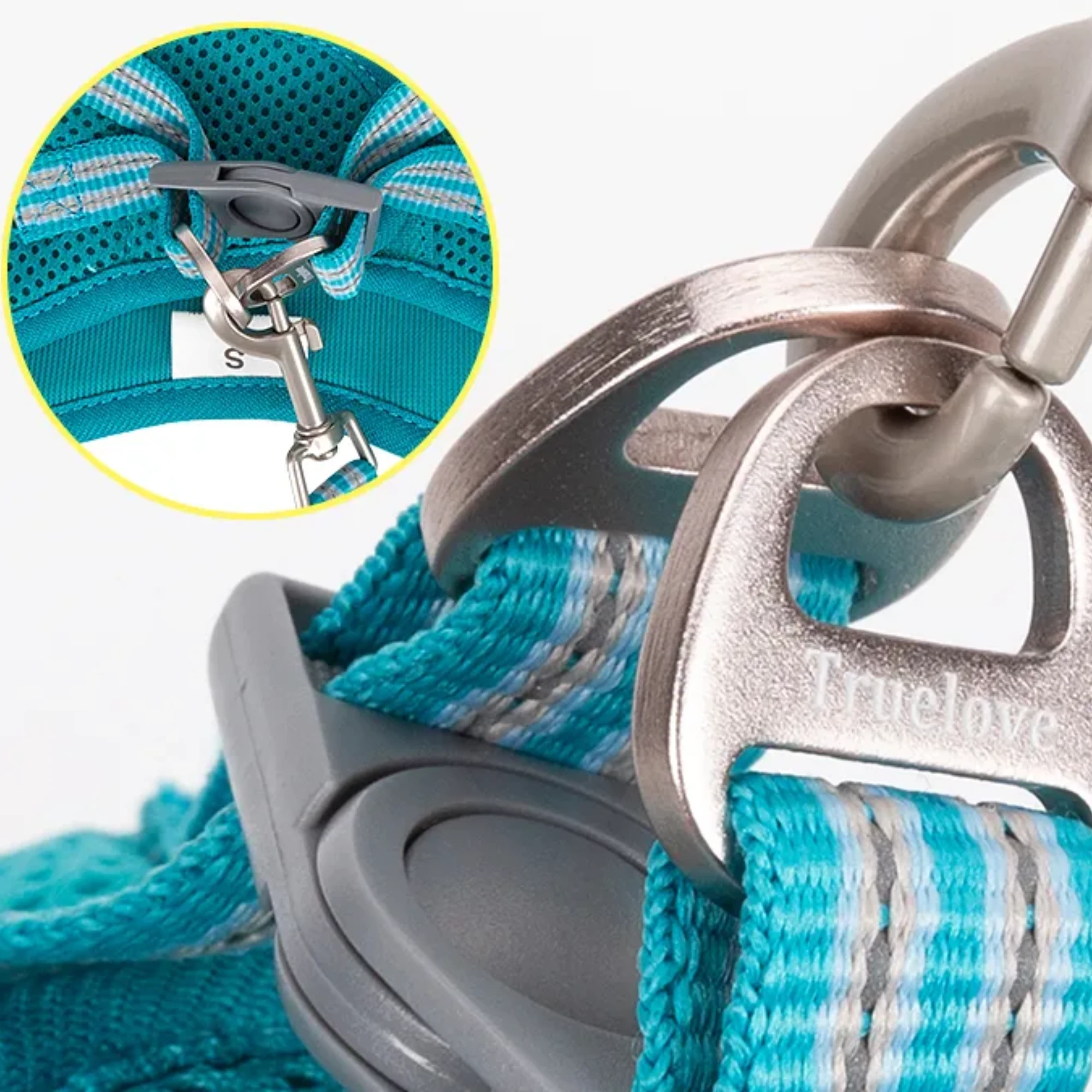 - Bezpieczne zapięcie na grzbiecie — szelki nie otwierają się przypadkowo podczas spaceru