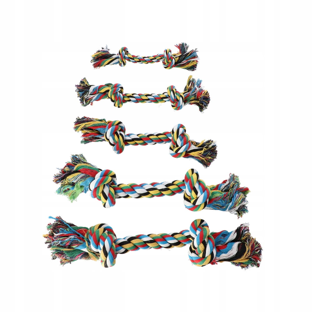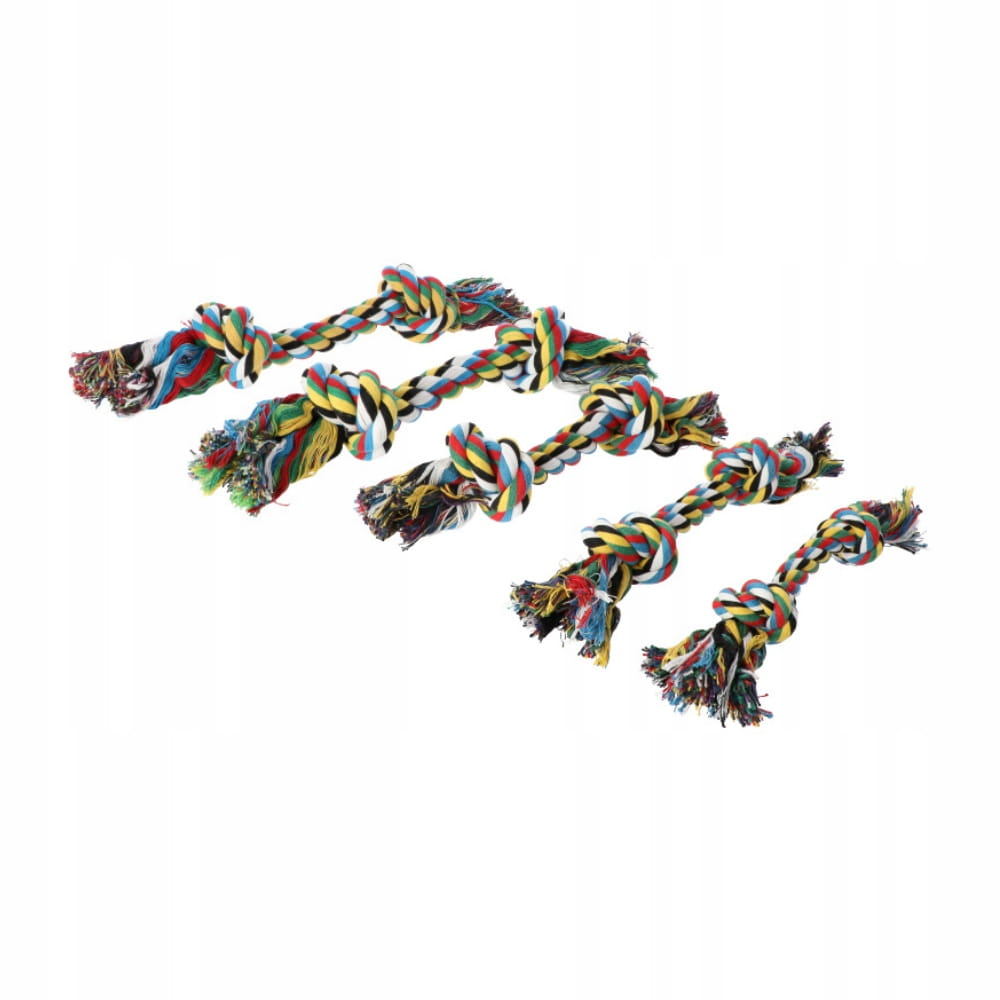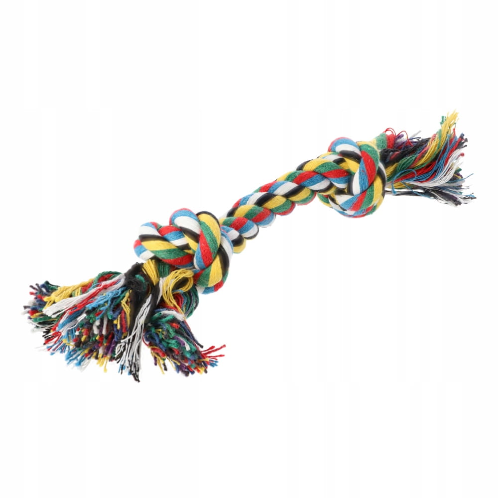 - Dwa węzły — ułatwiają chwytanie podczas zabawy w przeciąganie dla psa i właściciela; wygodny uchwyt po obu stronach sznura