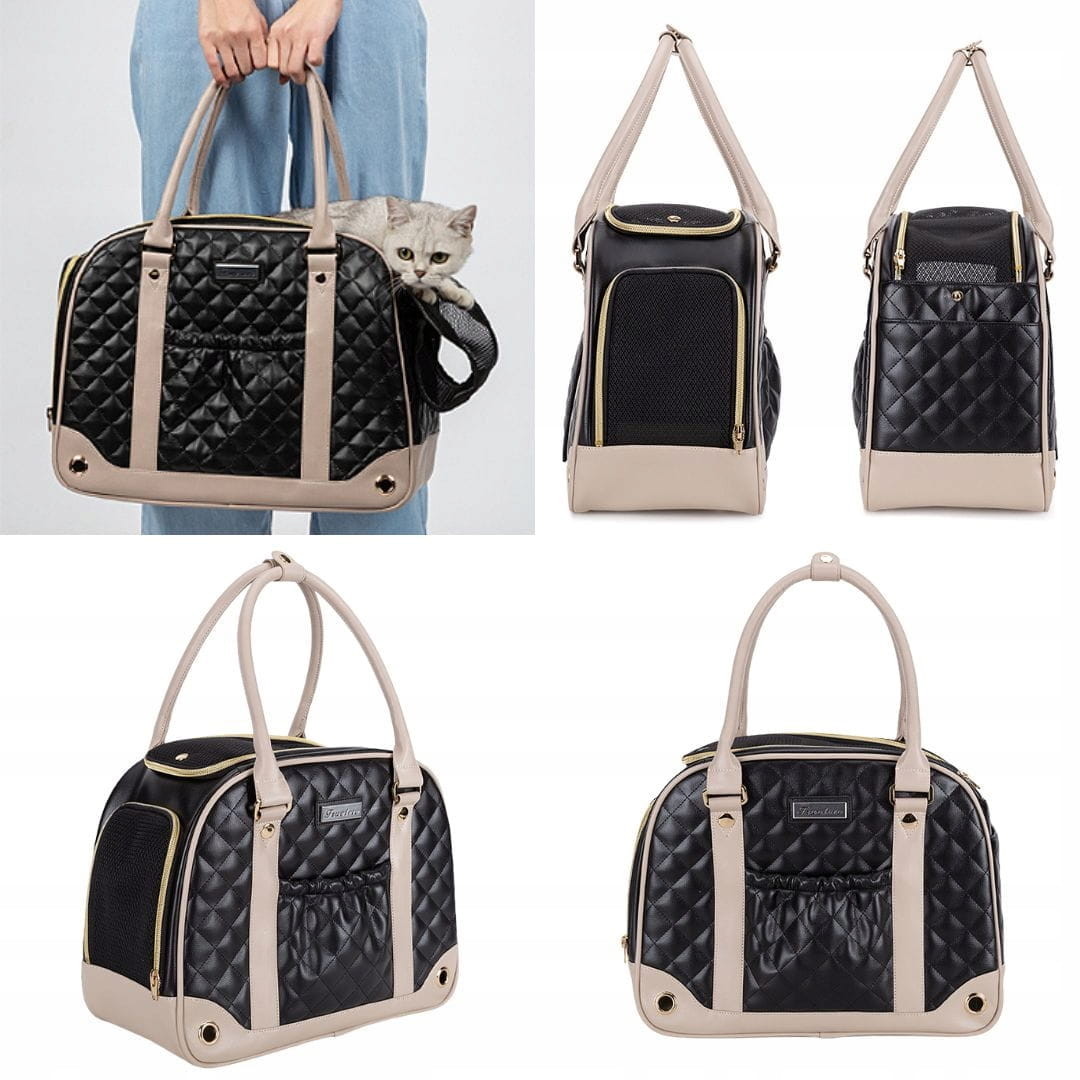 - Klasyczny czarny kolor — uniwersalny, pasujący do każdej stylizacji; torba wygląda elegancko w kawiarni, w sklepie, na spacerze i podczas wizyty u weterynarza