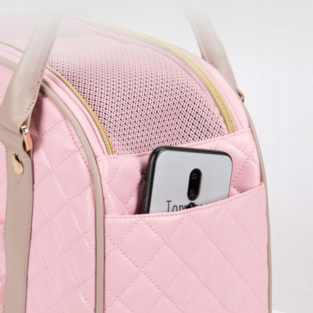 - Kieszeń na telefon, książeczkę zdrowia i drobiazgi — osobna kieszeń oddzielona od przestrzeni dla zwierzaka; mieści kartę weterynarza, klucze, telefon i inne niezbędne rzeczy