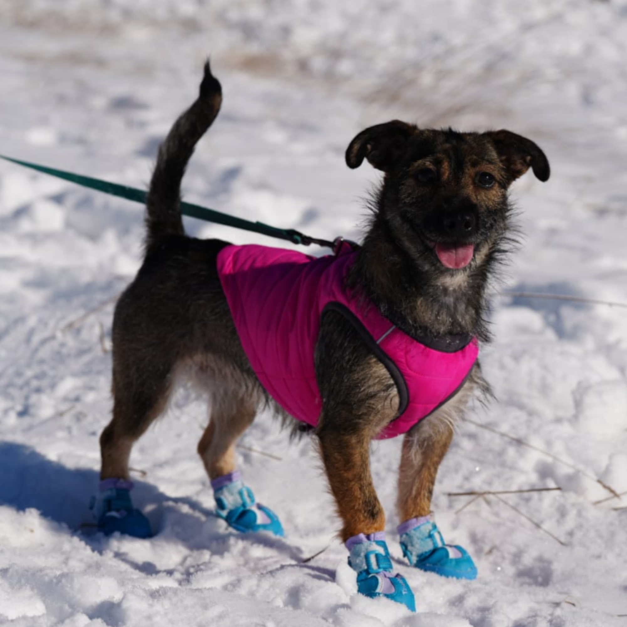 Wykonane z trwałego materiału softshell, buty są wodoodporne i jednocześnie oddychające, co zapewnia komfort termiczny nawet podczas dłuższych spacerów. Wnętrze wyściełane miękkim polarem chroni łapy przed otarciami i wychłodzeniem.