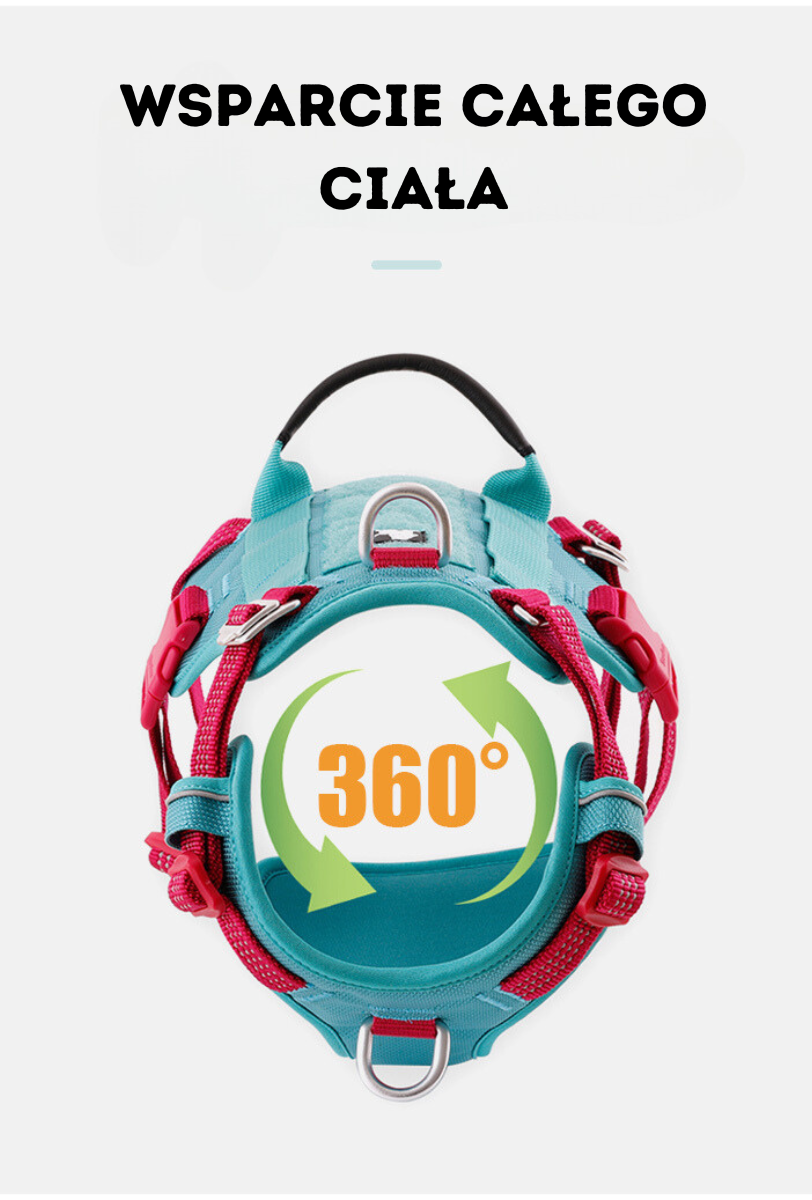 - sześciopunktowa regulacja – idealne dopasowanie przy szyi, klatce i brzuchu — pies nie jest w stanie się wyślizgnąć