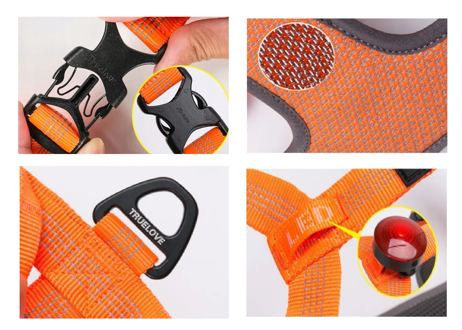 Szelki guard + easy walk Truelove Lumen Easy Walk – odblask, lampka LED, rączka, siateczka MESH (pomarańczowe)