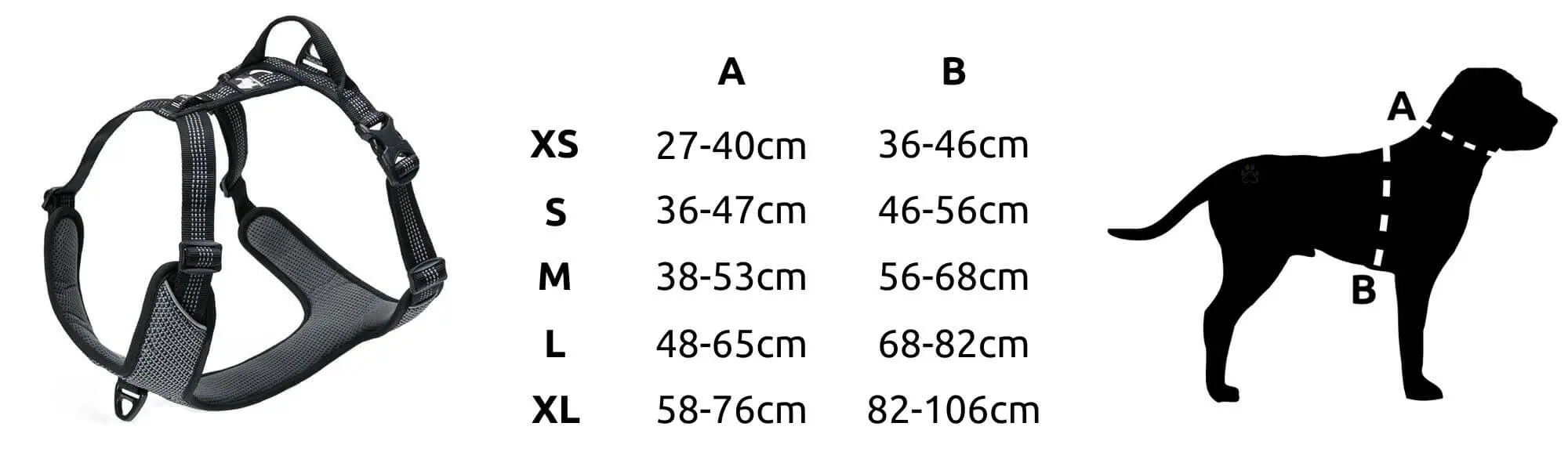 - Czteropunktowa regulacja — precyzyjne dopasowanie do indywidualnej sylwetki psa niezależnie od rasy i budowy