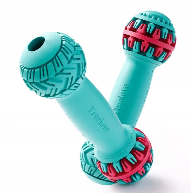Teether Truelove: naturalna nietoksyczna guma odporna na mocny zgryz, wypustki masują dziąsła i oczyszczają zęby, specjalne otwory na przysmaki wydłużają zaangażowanie psa i spowalniają jedzenie. Wystarczy opłukać pod wodą. Sprawdź pełną ofertę zabawek dla psów.